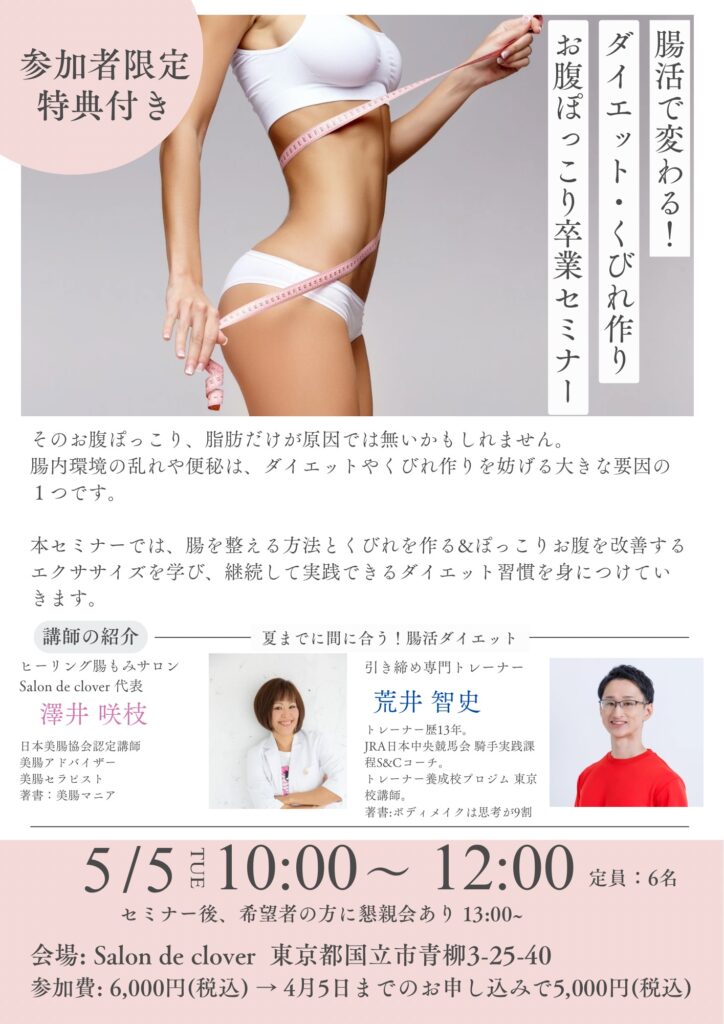 #256 セミナー開催情報『腸活で変わる!ダイエット・くびれ作り お腹ぽっこり卒業セミナー』